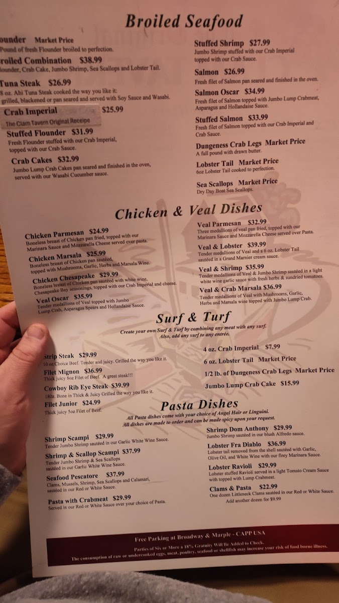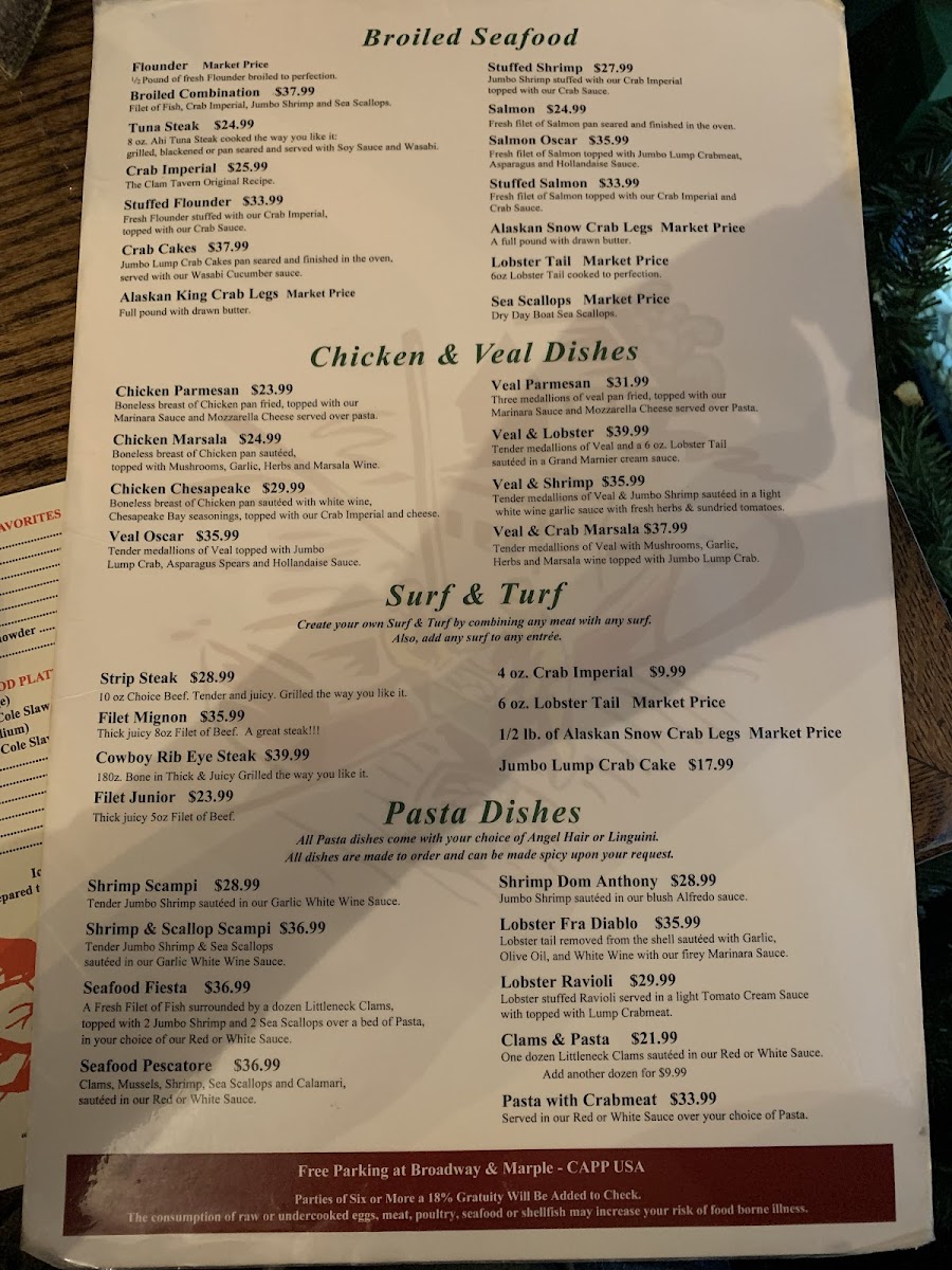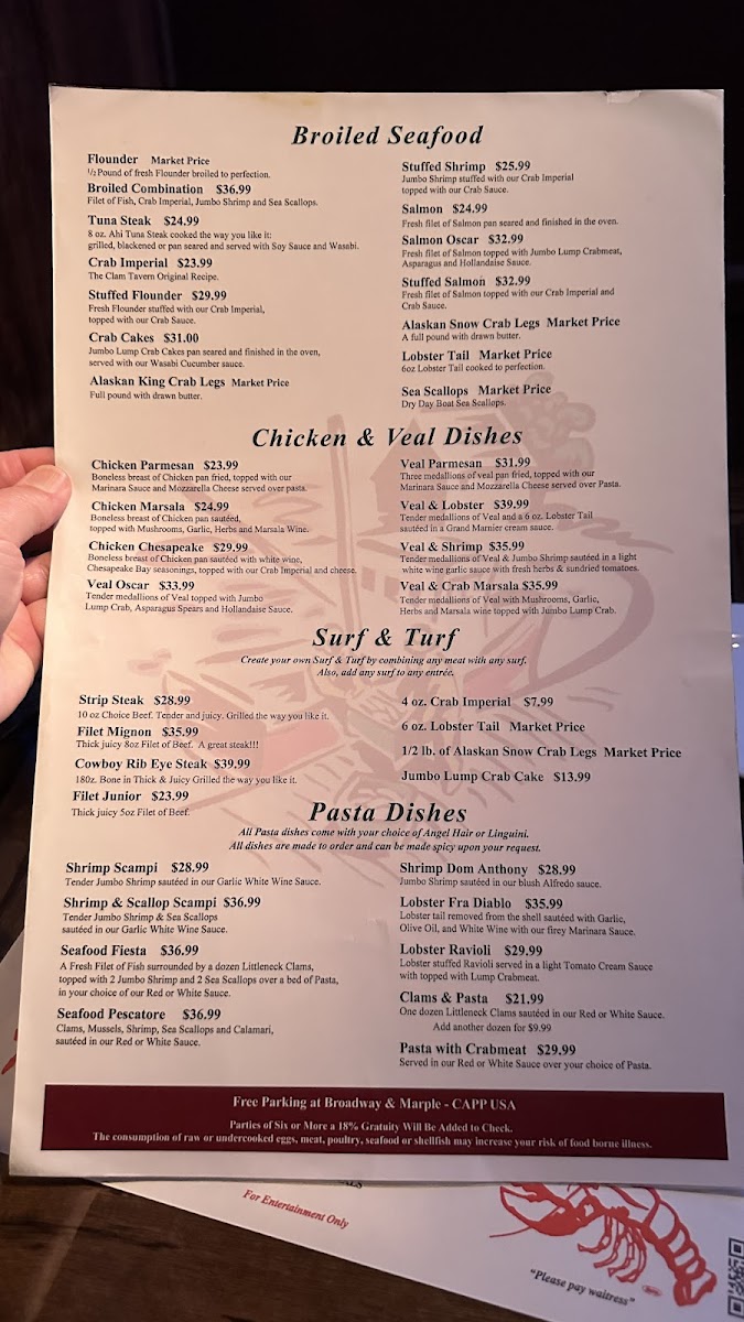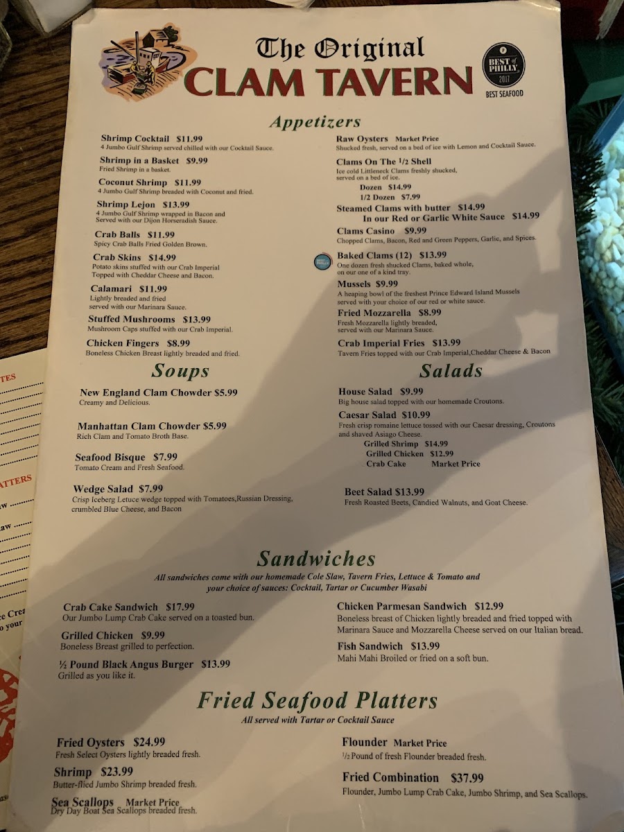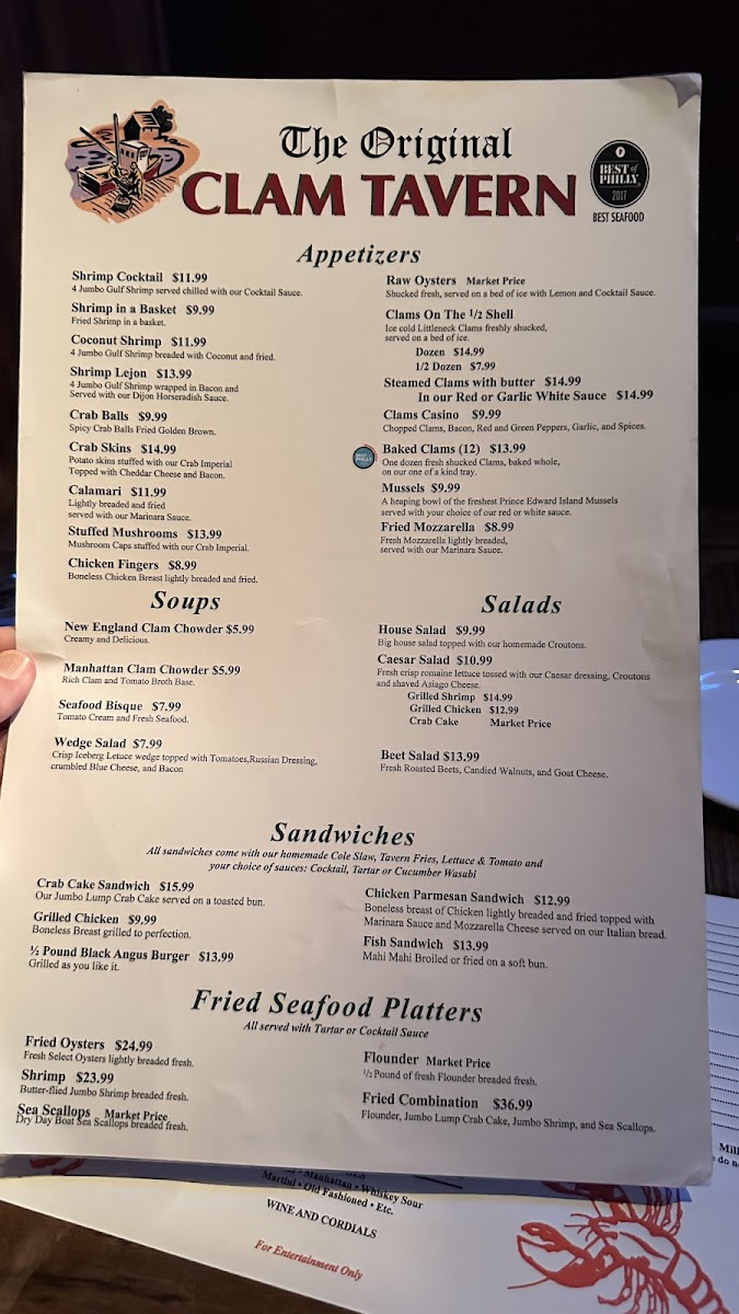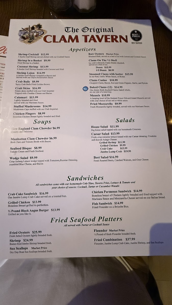 Welcome to Clam Tavern, a hidden gem at 339 E Broadway Ave, Clifton Heights, PA. Known for its delightful seafood and warm atmosphere, Clam Tavern promises an exceptional dining experience supported by a dedicated staff. Diners rave about their fresh offerings, including the Fried Shrimp and Crab Imperial, both crowd favorites. The Tavern Fries and Calamari make for irresistible starters, while the Seafood Bisque warms the soul.